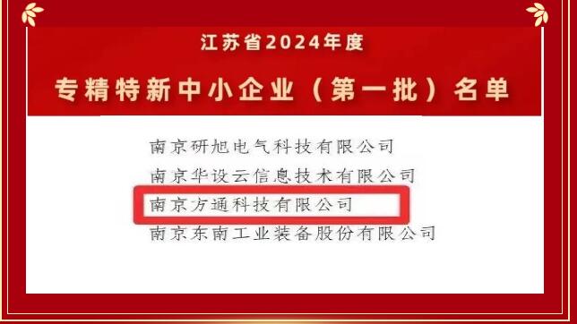 喜報|專(zhuān)注鑄專(zhuān)業(yè),精益求效益,南京方通科技有限公司成功入選江蘇省2024年度專(zhuān)精特新中小企業(yè)(第一批
